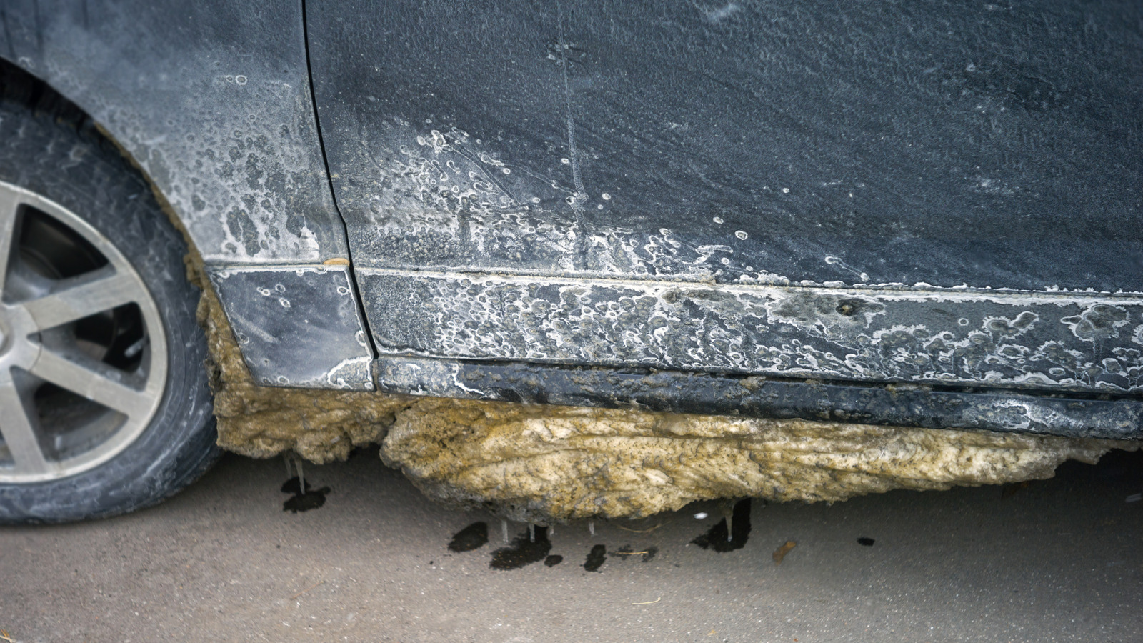 Corrosion Chimique (Oxydation) : En présence d’humidité, le sel forme un électrolyte qui accélère radicalement le processus de rouille. Il attaque d’abord les métaux nus (bas de caisse, pièces mécaniques), mais il s’attaque aussi au vernis et à la peinture, la faisant ternir, cloquer et se décoller à long terme.